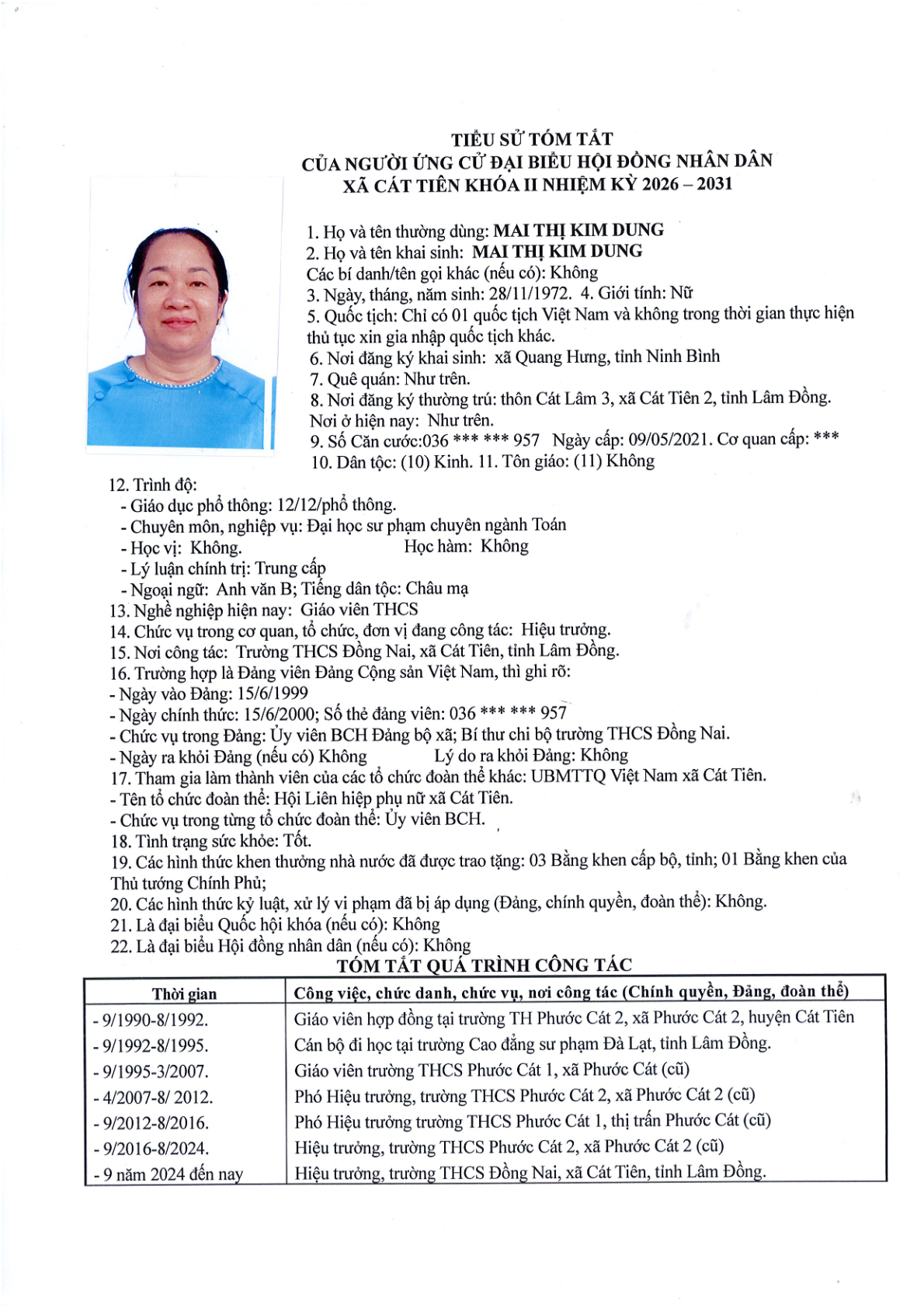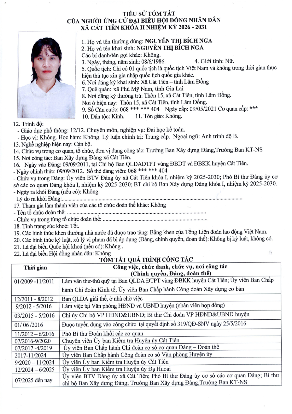 Chương trình hành động của Ứng cử viên ứng cử Đại biểu Hội đồng nhân xã Cát Tiên nhiệm kỳ 2026 - 2031 - đồng chí Bùi Thị Ngọc Tú
